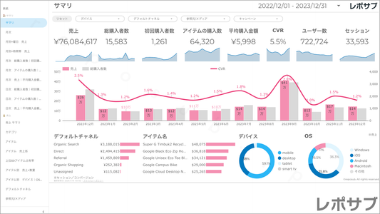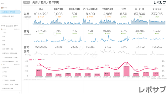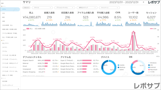 【買い切り】GA4 EC特化レポート:先月のレポート(対象期間を先月に設定済み)Looker Studio