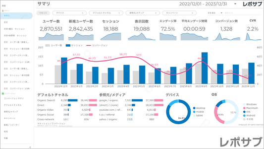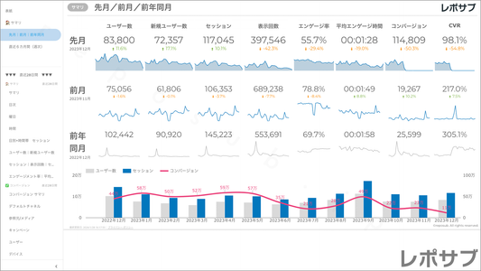 【買い切り】GA4レポート:過去1年間の月次レポート(対象期間を過去13カ月に設定済み)Looker Studio