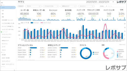 【買い切り】GA4レポート:先月のレポート(対象期間を先月に設定済み)Looker Studio
