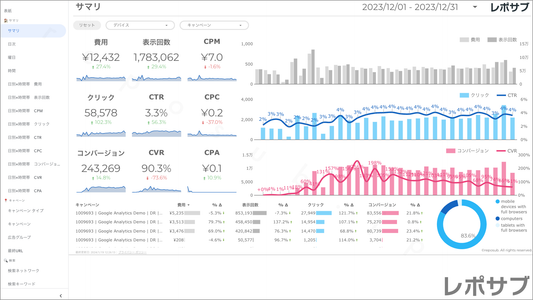 【買い切り】Google広告レポート:先月のレポート(対象期間を先月に設定済み)Looker Studio