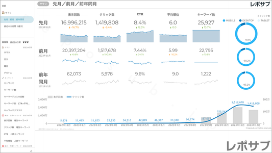 【買い切り】Googleサーチコンソールレポート:先月のレポート(対象期間を先月に設定済み)Looker Studio